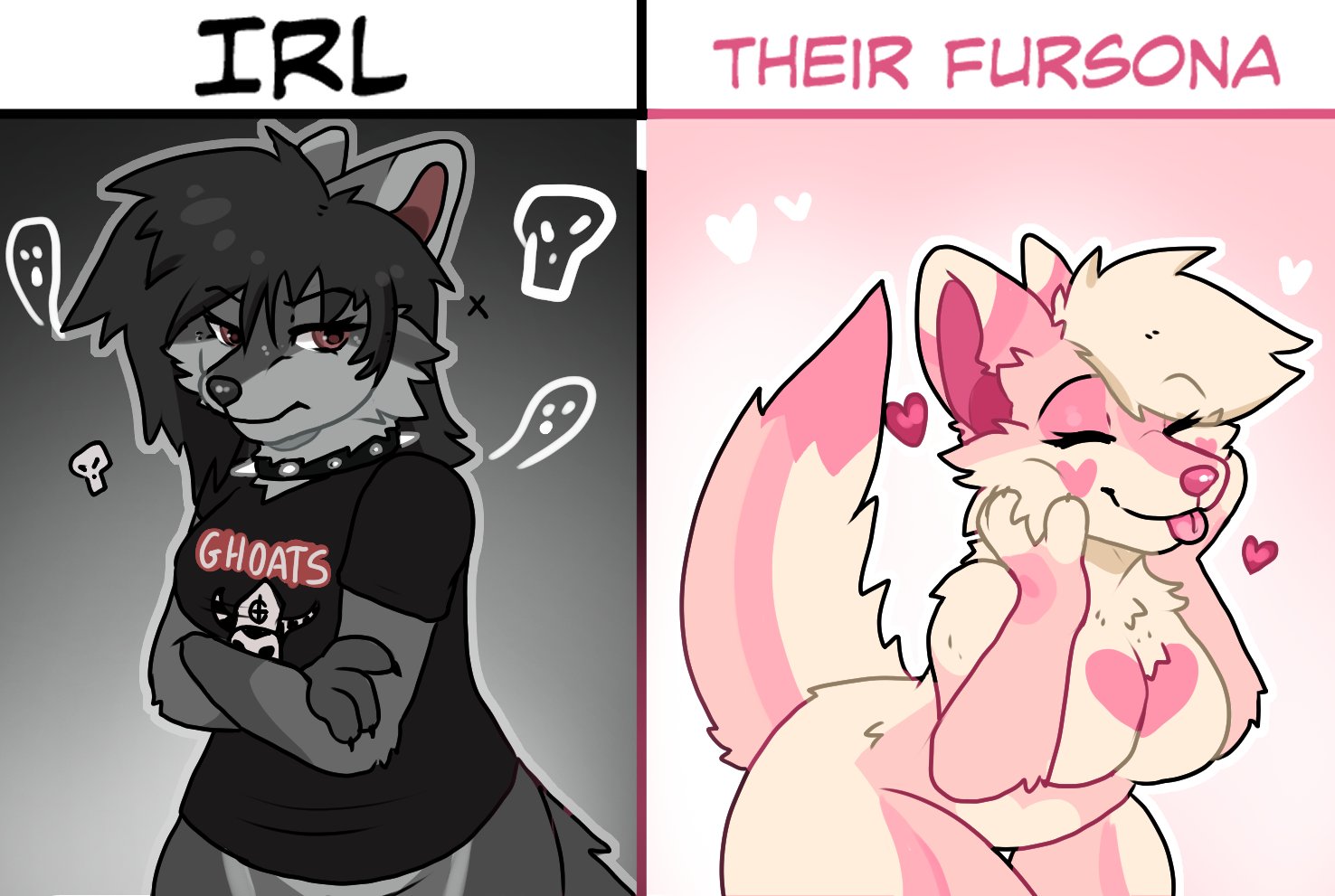Recently I was talking with a visiting fur (@dragonlabs on bsky) and they had the interesting perspective: "Azure [their sona] is just a character -- i'm not them." (this was in the context of gender identity, the human behind Azure was diverging away from Azure's masculinity)